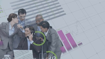 Diverse Businesspeople Analyzing Financial Data Trends Overlay Videos