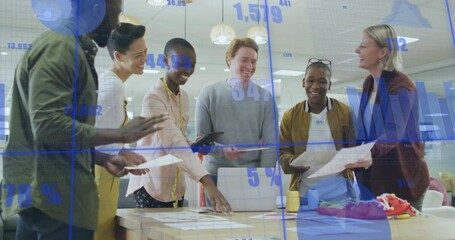 Diverse Colleague Interaction With Financial Digital Overlay Videos