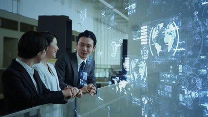 Diverse Colleagues Analyzing Data With Futuristic Interface Videos