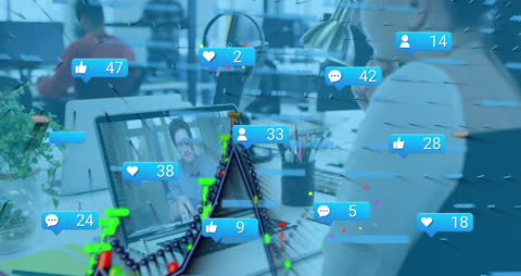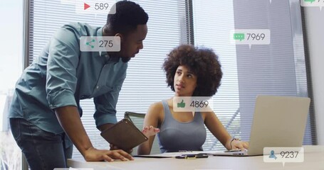 Diverse Colleagues Analyzing Social Media Metrics In Modern Office Videos