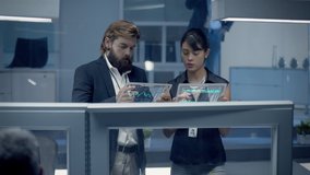 Diverse Colleagues Analyzing Stock Market Data In Futuristic Office Videos
