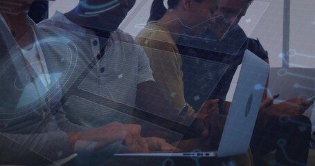 Diverse Colleagues Collaborating With Digital Network Interface Overlay Videos