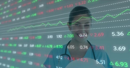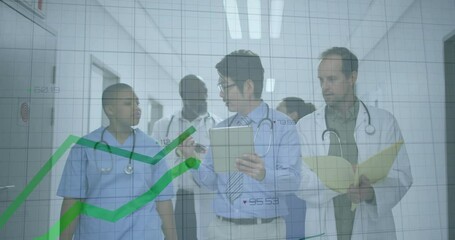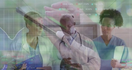 Diverse Doctors Analyzing Financial Data Overlay Videos