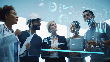 Diverse Doctors Discussing In Futuristic Digital Interface Videos
