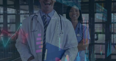 Diverse Doctors With Financial Data Overlay Videos