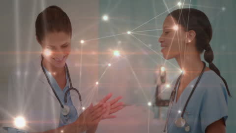 Diverse Female Doctors Using Technology With Heart Overlay Videos