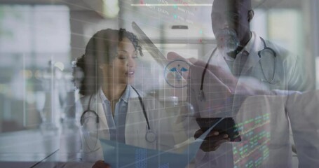 Diverse Female Doctors With Futuristic Digital Interface Overlay Videos