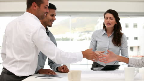 Diverse Professionals Collaborating In A Modern Office With Digital Icons Videos