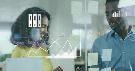 Diverse Professionals Collaborating In A Modern Office With Digital Icons Videos