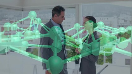 Diverse Professionals Greeting With Technology Overlay In Office Videos