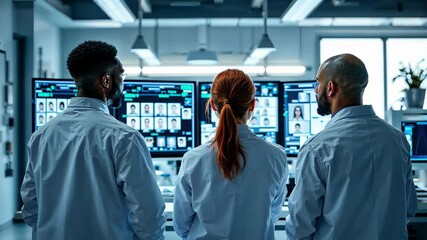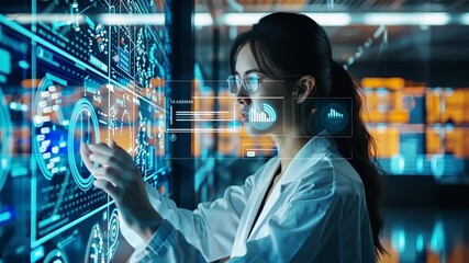 Diverse Scientists Analyzing Data With Futuristic Display Videos