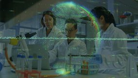 Diverse Scientists Collaborating With Global Connections Overlay Videos