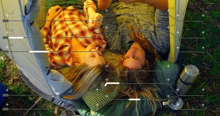 Diverse Students Collaborating With Data Overlay On Screen Videos