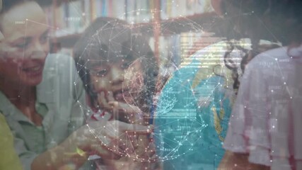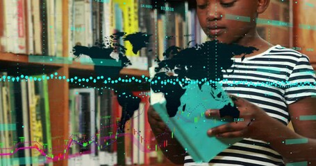 Diverse Students Learning With Digital Data Overlay In Library Videos
