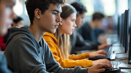 Diverse Students Networking Using Computers In Classroom Videos