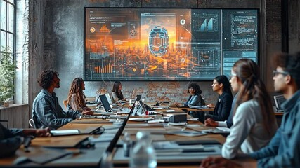 Diverse Team Analyzing Data Visualization Presentation In Office Videos