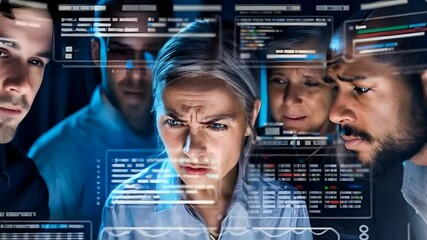 Diverse Team Analyzing Data With Holographic Interface Videos