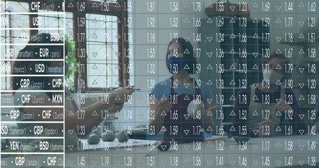 Diverse Team Analyzing Financial Data With Technology Overlay Videos