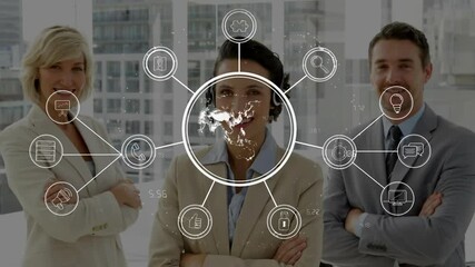 Diverse Team Analyzing Futuristic Digital Interface Videos