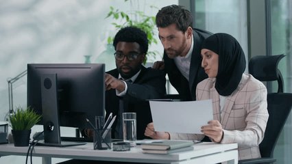 Diverse Team Collaborating And Analyzing Data In Modern Office Videos