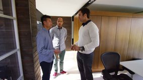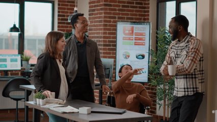 Diverse Team Collaborating In Modern Office Setting With Animated Elements Videos