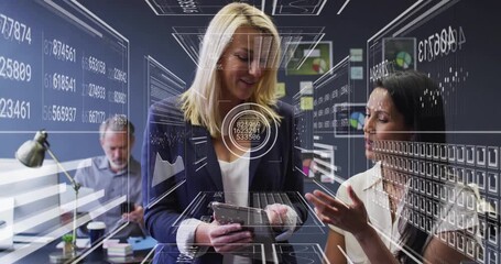 Diverse Team Collaborating In Modern Office With Data Visualization Videos