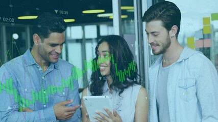 Diverse Team Collaborating With Data Animation Overlay Videos