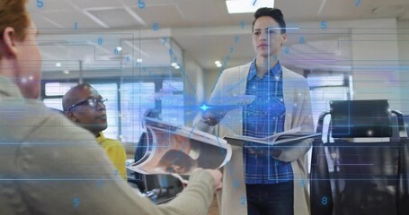 Diverse Team Collaborating With Digital Data Overlay In Office Videos