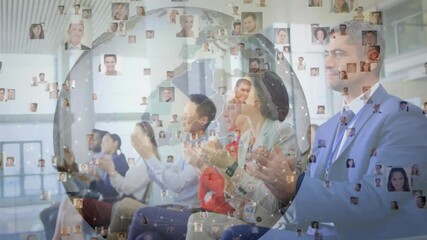 Diverse Team Collaborating With Digital Grid Overlay Videos