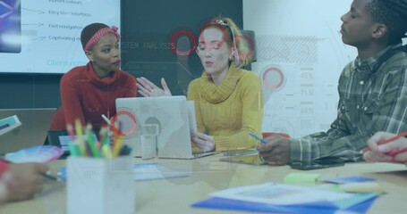 Diverse Team Discussing Data With Digital Overlay Videos