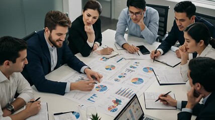 Diverse Team Working On Financial Analytics Data Videos