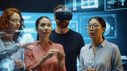 Diverse Team Working With Virtual Data Interface Videos