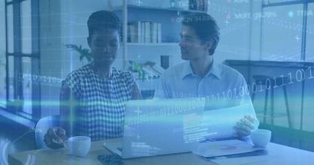 Diverse Women Collaborating With Digital Data Overlay In Office Videos