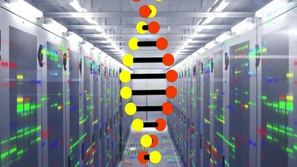 Dna And Data Processing Visualization In Server Room Videos
