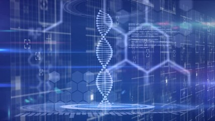 Dna Strand And Data Processing Animation On Blue Background Videos