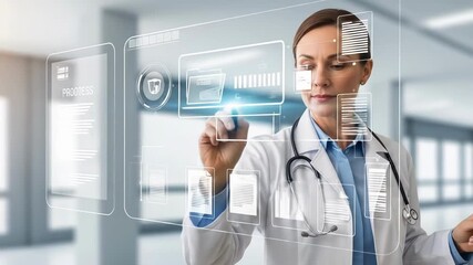 Doctor Analyzing Data On Interactive Transparent Display Videos