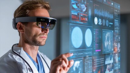 Doctor Analyzing Data Through Futuristic Interface Videos