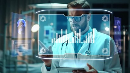 Doctor Analyzing Data With Advanced Digital Interface In Clinic Videos