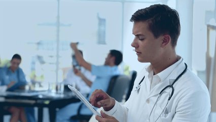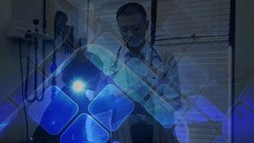 Doctor Analyzing Digital Data On Tablet In Futuristic Setting Videos