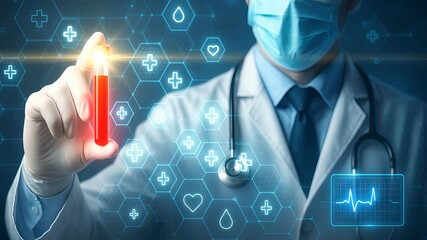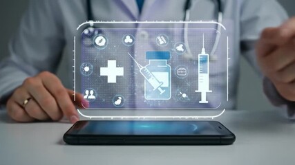 Doctor Analyzing Vial In Digital Data Interface Videos