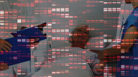 Doctor Consulting Elderly Patient With Digital Data Overlay Videos