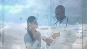 Doctor Using Tablet With Digital Network Overlay Videos