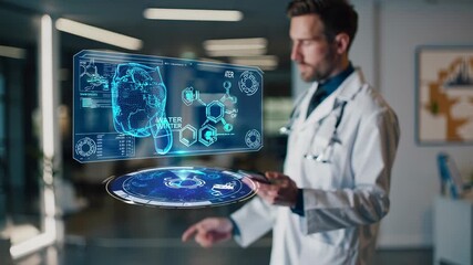 Doctor With Tablet Analyzing Data And Global Interface Videos