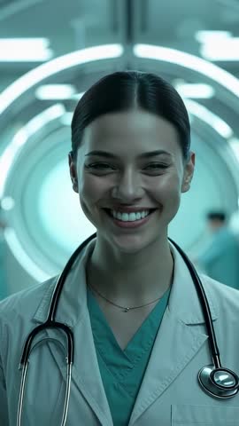 Doctors Analyzing Data In Hospital Corridor With Tech Interface Videos