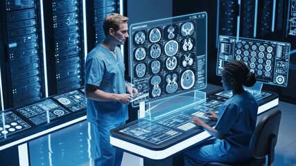Doctors Analyzing Data With Futuristic Digital Interfaces Videos