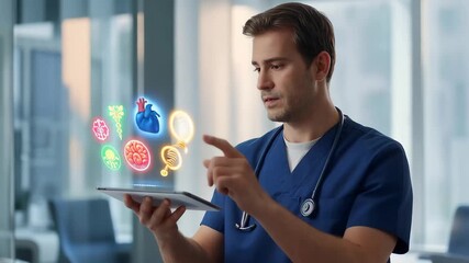 Doctors Analyzing Digital Health Data With Interactive Graphics Videos