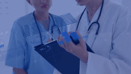 Doctors Analyzing Digital Medical Data With Binary Code Overlay Videos