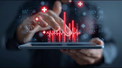 Doctors Analyzing Medical Data With Financial Screens In Background Videos