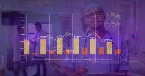 Doctors Analyzing Medical Data With Financial Screens In Background Videos