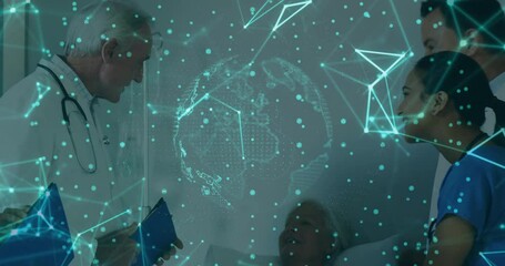Doctors Collaborating With Digital Network Overlay Videos